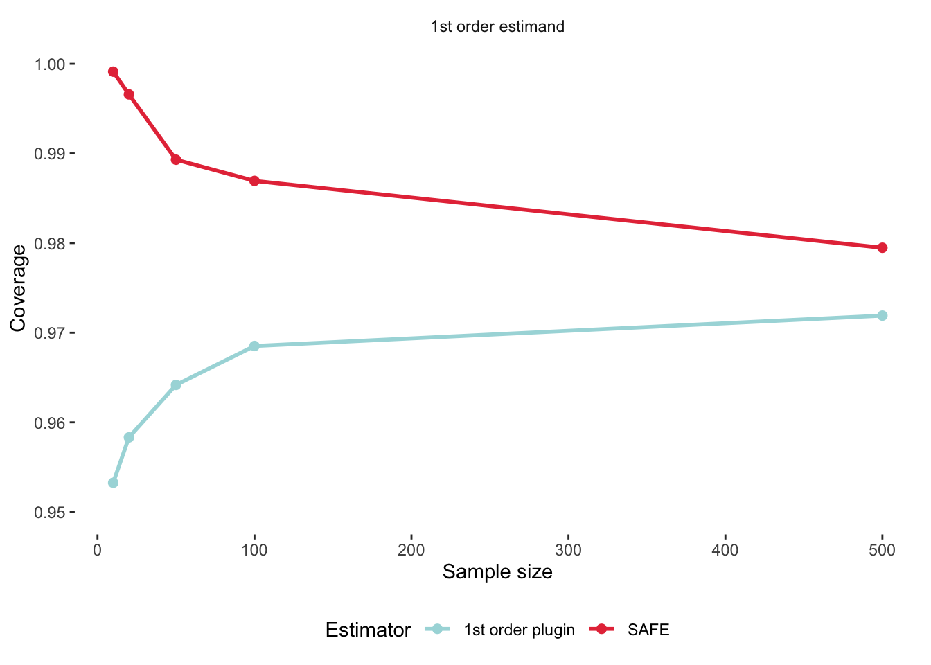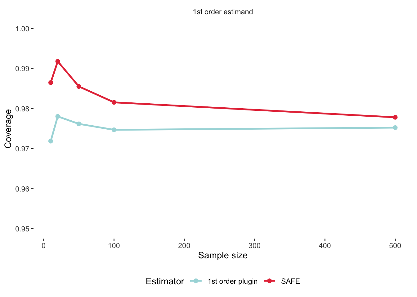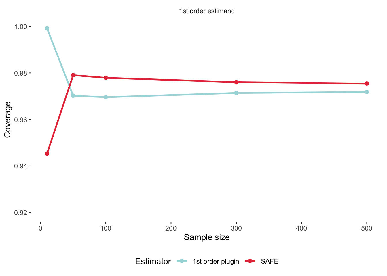 We can now compare our plug-in effect size to our bias-corrected SAFE effect size: